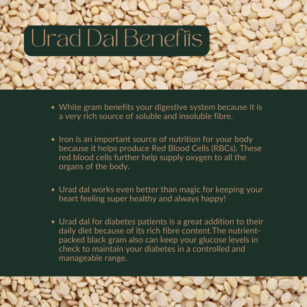 In India, Urad dal is considered one of the most nutritious beans, and its health benefits make it a must-have. It can either be eaten as a cereal or used in Ayurvedic medicine, and both ways, it provides many health benefits. 🍲✨