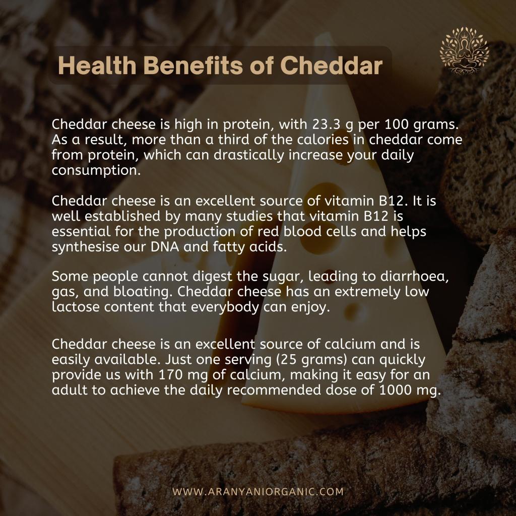 Perfect for Lactose Intolerant People: Lactose is a sugar that is naturally present in milk and milk products. However, some people cannot digest the sugar, leading to diarrhoea, gas, and bloating. Cheddar cheese has an extremely low lactose content that everybody can enjoy.