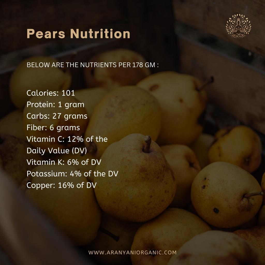 Aids in Weight Loss: When counting the various benefits of eating pears, do consider its potential to help you lose weight. Pear is a low-calorie fruit that keeps you feeling fuller for a longer time due to its high fibre content. A medium-sized pear contains about 100 calories only.